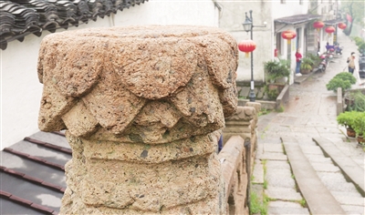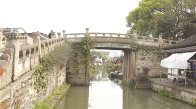 “云气横开八阵形,桥形遥分七星势。”夕阳西下,结构奇巧的八字桥跨越800多年的风雨,隐在江南的诗意之中。晚归的小舟从桥下慢慢划过,水面上便漾开了绮丽的波纹。沿河鳞次栉比的民居亮起了点点灯光,人们三五成群,坐在河边的椅上、石凳上,弹琴、聊天、观赏夜景;廊沿下挑出的串串红灯笼,为八字桥增添了几许神秘的色彩,美仑美奂,浑然天成,烟火气息,氤氲漫溢……