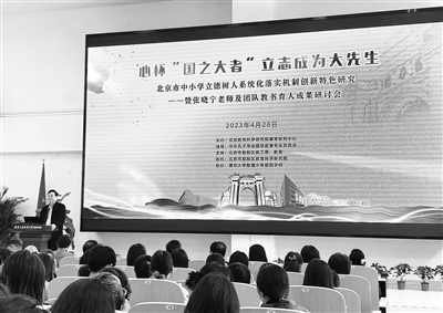本报讯 (记者 孙妍) 由北京教育科学研究院德育研究中心主办的北京市中小学立德树人系统化落实机制创新特色研讨会近日在清华附中朝阳学校召开。本次研讨会以“心怀‘国之大者’,立志成为大先生”为主题,分为课堂观摩研讨和主题交流研讨两个环节。