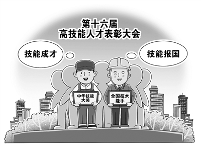 近日,第十六届高技能人才表彰大会在北京举行。会上表彰了30名中华技能大奖获得者和295名全国技术能手。中华技能大奖获得者代表马小光、王树军、史昆、占绍林和全国技术能手代表魏凤云分别介绍了他们爱岗敬业、技能成才、创新创造、为国奉献的先进事迹。(5月8日《工人日报》)□朱慧卿
