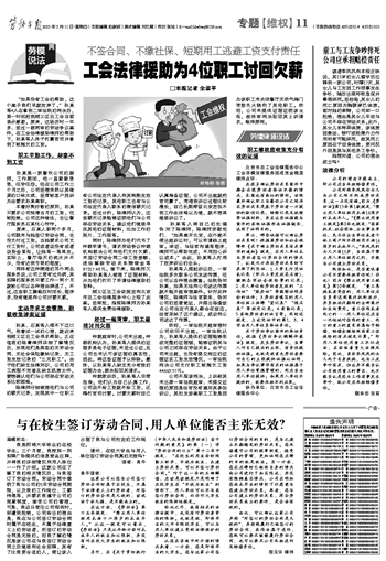 工会法律援助为4位职工讨回欠薪