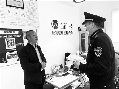 连日来,石景山区市场监管局在辖区开展了电动自行车产品质量全覆盖专项执法检查,现场查看电动自行车销售主体经营场所是否公示电动自行车产品目录,逐一核对场所内经营的相关车辆是否纳入产品目录中,以确保销售车辆的合规合法性。本报记者 周美玉 摄影报道