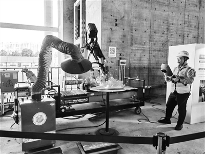 安全巡视机器人、焊接机器人……一台台先进的科技设备纷纷亮相,这里不是机器人大会,而是中建二局新国展二期项目工地。