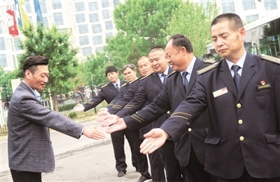 “大家手指自然并拢,手掌向上,手臂伸直……”昨天上午,北京公交474路车队工会组织职工开展“提升职业素养,塑造文明形象”文明礼仪培训活动。活动中,职工们学习了文明社交礼仪及服务意识等内容,让学礼仪、知礼仪融入日常工作中。本报记者 于佳 摄影报道