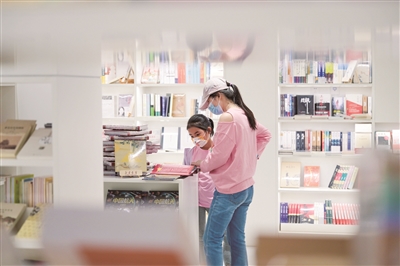 9时45分,穿戴整齐的书店营业员刘紫瑾、王静媛和李淼进入营业前的准备阶段。她们分工合作,按部就班地完成着摆放图书、擦拭地面、整理体验设备等工作事项。15分钟后,随着店长穆贝打开大门,书店准点迎接读者的到来。