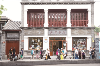 这座由灰色砖墙和红色木质门窗组成的二层建筑,因其独特的民国外观风格吸引了不少路人的目光。作为北京中轴线遗产区范围内唯一一家挂牌文物经营的书店,这个特别的身份更让这里工作的职工倍感荣耀。