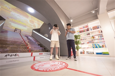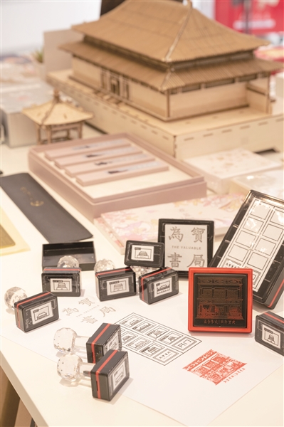 “哇,这个印章太有意思了。”在书店的一角,不少读者争相“打卡”新华书店地安门店·为宝书局建筑外观的印章。忙着为读者服务的穆贝正是这枚印章的制作者。“我们书店外观很有特色,我就想着把它制作成印章。”他说。