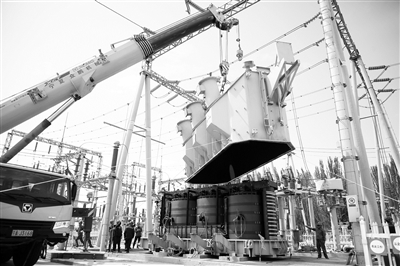 近日,国网银川供电公司变电检修人员对连续运行27年的掌政220千伏变电站1号主变压器进行大修,确保迎峰度夏期间银川电网安全可靠运行。据悉,掌政220千伏变电站是银川电网的重点枢纽变电站,为银川东部核心商圈、工业、农业和畜牧业提供电力供应。图为电力工人在工程现场进行检修作业。 新华社发