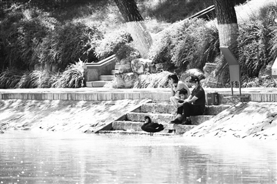 近日,记者来到东三环附近的农展馆后湖,湖面上小荷初露尖尖角,鸳鸯双飞,天鹅畅游,与回廊亭台、碧瓦黄檐古典建筑群交相辉映,勾勒出一幅美丽的生态画卷。