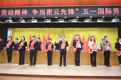 密云区鼓楼街道东菜园社区居委会荣获密云区劳动奖状,该社区党委书记陈奇才以《立足岗位做奉献,服务居民促和谐》为主题分享了社区干部们的岗位故事,让人感动不已。这是密云区总工会除现场表彰市级及以上荣誉获得者外,还在全区范围内评先出15个密云区劳动奖状、30个密云区工人先锋号和130名密云区行业标兵,予以表彰。一个个鲜活的立足岗位、建功立业的动人故事娓娓道来,呈现出一幅幅密云区广大干部职工乘风破浪、奋勇向前的生动画面。