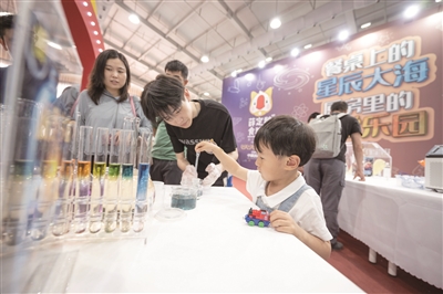 “平时我很喜欢看《三体》《流浪地球》,感觉看科幻能开拓视野、增长见识。今天的科幻展非常有趣,像行星重力、重返地球这些装置很好玩,体验感很强,激发了我探索星空宇宙奥秘的浓厚兴趣。”一位正在参观的学生表示。