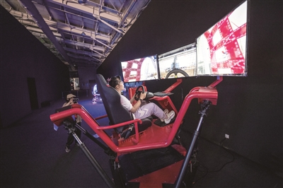 此外,科幻产业新技术新产品展带领观众“飞向科幻未来”。在中关村科幻产业创新中心一层展厅前,平板电脑里的画面将虚拟与现实结合起来,AR展示的未来飞车在首钢园原本运输炉渣废料的高空轨道上穿梭驰骋,拉开了科幻产业新技术新产品展览的序幕。