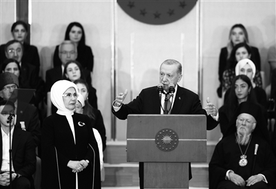 土耳其总统任期5年,选举采用两轮投票制的全民直选。第一轮投票中,如无候选人获得逾半数选票,得票率前两位候选人参加第二轮角逐。图为土耳其总统埃尔多安在首都安卡拉出席就职仪式。