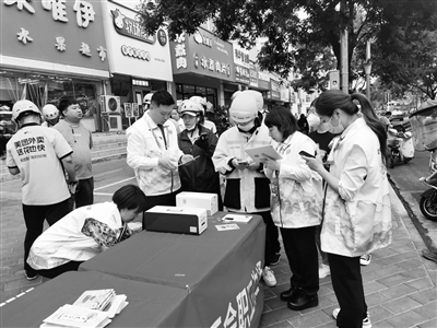 当天,在活动现场,工会服务站工作人员张蓓蓓和司佳向外卖小哥发放了《建会秘籍》等宣传材料,并宣传了工会组织的“六送六保障”,即:送政策、送关怀、送慰问、送健康、送清凉、送温暖;保重疾、保在职意外伤害、保子女意外、保非工伤意外及身故、保女工特疾、保家财损失,并为新就业形态劳动者发放了“清凉包”。