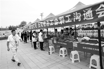 同一时间,西城区金融街购物中心广场上人头攒动,一场职工沟通会正在这里举行。