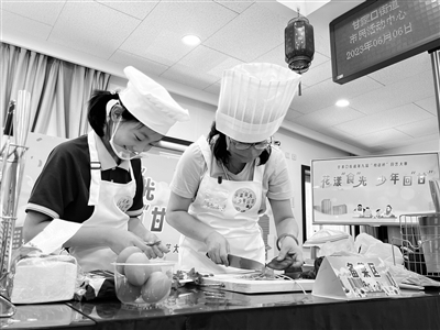 昨天,海淀区甘家口街道第九届“和谐杯”厨艺大赛在该街道市民活动中心举行。甘家口居民带领13名来自花园村第二小学的“小帮厨”一同烹饪营养餐。甘家口街道市民活动中心相关负责人表示,今后将继续开展青少年劳动教育活动,让孩子们提升幸福生活的能力。