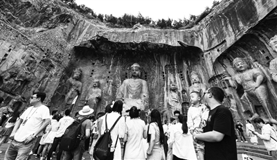 眼下,河南洛阳龙门石窟景区正值旅游旺季,精美的石刻佛像吸引众多游客参观。龙门石窟位于洛阳市南郊,开凿于北魏孝文帝迁都洛阳时期,迄今有1500多年历史,2000年龙门石窟被列入《世界遗产名录》。 新华社发