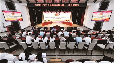 本次集体协商大赛从5月26日启动,来自7个产业和17个区的24支队伍参赛。经12场初赛的选拔,北京市服务工会、大兴区总工会、西城区总工会、东城区总工会、通州区总工会、北京市建筑工会、丰台区总工会、石景山区总工会八支代表队晋级复赛。大赛采取“赛前培训——比赛——赛后点评”模式,起到以赛促学、锻炼队伍的作用。本报记者 于佳 摄