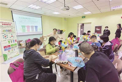 为进一步倡导绿色、低碳、环保的生活方式,平房地区时常开展各种形式的宣讲活动,投入大量设施设备,市民对垃圾分类的自觉意识得到了进一步强化。前不久,平房地区国美家园第二社区开展了主题为“垃圾分类,文明你我”垃圾分类活动。活动现场,工作人员向居民宣传生活垃圾分类的意义,如何区分可回收垃圾、有害垃圾、厨余垃圾、其他垃圾,以及这些分类垃圾桶对应的颜色,鼓励居民养成生活垃圾分类的好习惯。同时利用一些可回收的原材料,指导居民制作美丽的“花束”,既为生活增添了几分情趣,又将这些材料变废为“宝”,达到了一举两得的目的。周美玉 摄
