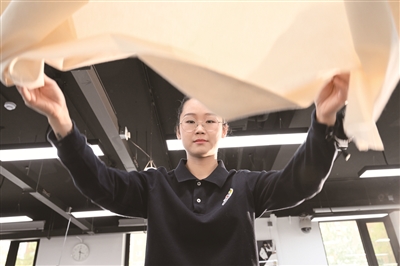 精心设计、剪裁、制版、成衣……普普通通的布料,最终在她手里成为了一件精美的女装。“整个设计和制作的过程,我都会非常投入,也从中获得了快乐和幸福。”北京市工贸技师学院服装设计与制作专业高级讲师胡萍说。