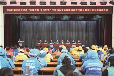 今年3月,密云区总工会联合相关单位共同举办了新就业形态劳动者“创城有我 争当先锋”文明行为业务技能培训,同时启动了快递员职业技能大赛。