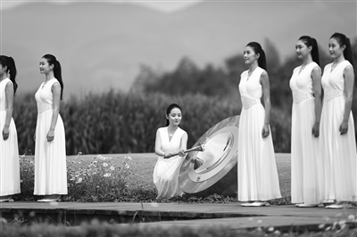 上午8时50分,以良渚文化为元素的文艺节目情景舞蹈《良渚之光》开始。伴随着悠扬神秘的旋律,身着远古服饰的表演者缓缓向大莫角山高地汇聚、起舞。大莫角山是五千多年前良渚古城的核心区。舞蹈艺术化重现了新石器时代良渚先民们耕作水稻、营造房屋、兴修水利等场景。