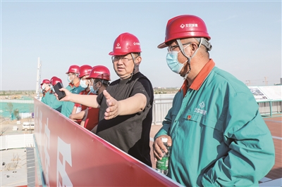 在国家速滑馆建设过程中,党员之家、职工之家、职工书屋、职工服务站、职工暖心驿站成为耀眼的“红色”,温暖着工程建设者的心。围绕地下结构封顶和钢环桁架滑移等关键节点,项目部适时开展劳动竞赛。在劳动竞赛中,党员目标责任区、党员先锋队如同在施工大干高潮中挺立的一面面红色旗帜,高效引领各个施工段、分包单位“比生产、比安全、比质量、比速度”,确保各个时间节点按期达成。