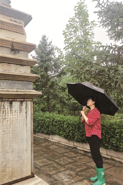 为了文物安全,续晓玉不怕山高路远,无惧酷暑严寒,云居寺和石经山的每一寸土地都留下了她忙碌的身影和坚实的足迹。在云居寺两平方公里的保护范围内,上到石经山山巅,下到藏经地宫,无论是洞窟、展室,还是文物库房,续晓玉进行安全巡查时坚持走到、看到、监测到、记录到,以便及时发现问题,消除安全隐患。她说:“每天都去看看‘老朋友们’心里才踏实,看着‘老朋友们’都安好,心里就特别高兴。”
