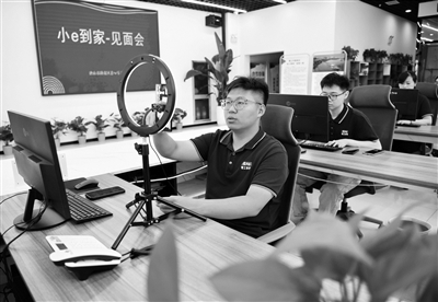 近年来,河北省唐山市路南区持续推进公共就业服务体系建设,大力发展公益性零工市场。零工市场以线上线下相结合的方式,为灵活就业人员提供信息发布、技能培训、权益保障等服务。截至目前,路南区零工市场已与800余家企业达成合作,为群众提供就业岗位5000余个。图为工作人员通过直播的方式发布招聘信息。 新华社发