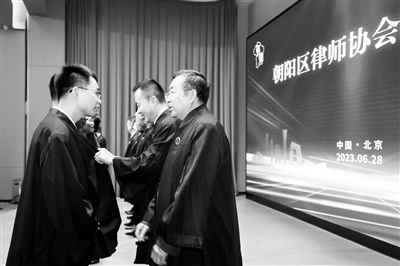 记者近日从朝阳区律师协会新闻发布会暨新闻媒体联席座谈会了解到,截至目前朝阳区有律所1279家,占全市的38.65%;律师23447人,占全市的53.09%。图为现场为50名新取得执业资格的律师授袍。