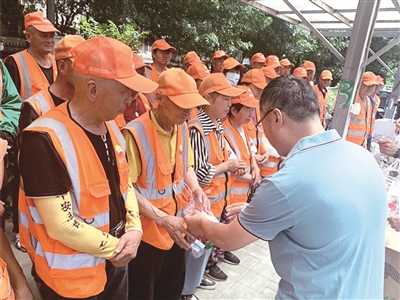 本报讯(记者 边磊 通讯员 刘懿娟) 近日,东城区体育馆路街道总工会为地区环卫职工送去防暑“清凉包”。