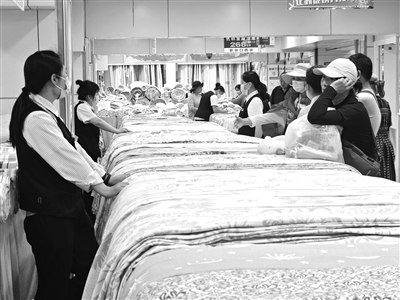 连日来,京城持续高温。记者昨天在新街口百货看到,前来选购竹纤维凉席、亚麻凉席的顾客络绎不绝。柜台上,各色花样的竹凉席依次排开,“每天这里都排大队,一天能卖出100多床,有不少都是老顾客。”一位工作人员告诉记者。