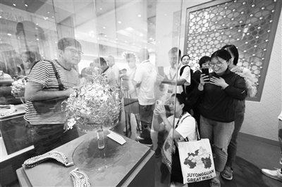 在定陵文物再聚首展展厅中,定陵出土的万历皇帝金冠以及孝端皇后和孝靖皇后的4顶凤冠一并“合璧亮相 聚首一堂”。据介绍,自1956年5月开始至1958年7月,定陵先后挖掘出土了万历皇帝金翼善冠1顶以及孝端、孝靖皇后所有凤冠4顶。此后,其中的两顶凤冠于1959年调拨给了故宫博物院和中国国家博物馆前身之一的中国历史博物馆。这次展出也是64年之后,4顶凤冠和万历皇帝金冠首次齐聚一堂。