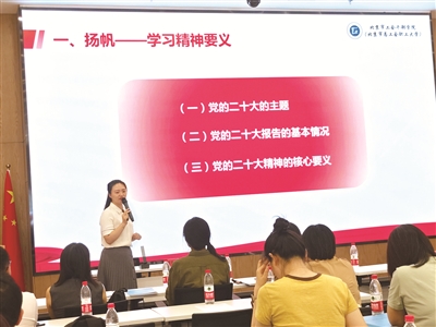 在当天的培训中,市工会干部学院教师以《领航新时代 奋进新征程——学习贯彻党的二十大精神推动工会工作高质量发展》为主题,与大家进行分享。参训工会干部纷纷表示,听课后深受启发,备受鼓舞,加深了对党的二十大精神的理解,今后将立足岗位,把学习成果转化为做好工会工作的动力。