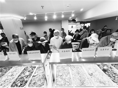 昨天中午,记者在长安商场B1层华方餐饮西城区养老餐集配中心看到,不少老年人来此排队等候就餐。由于老年人饭量普遍偏小,因此这里用餐是按两收费,每天安排15个品类的菜品,一荤两素的热菜价格在20元左右,同时还提供主食外卖、熟食外卖等便民服务。据悉,该中心服务范围辐射西城区15个街道263个社区,并为58家养老驿站提供配餐服务,有效解决了辖区老年人“做饭难、吃饭慢”的问题。
