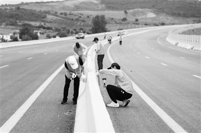 “阿尔及利亚的年轻工程师在与中国同事的长期合作过程中积累经验、迅速成长,他们代表着阿工程行业的光明未来。”阿高速公路管理局东部区域负责人穆罕默德·萨拉赫·卡菲说。图为在阿尔及利亚塔夫省,施工人员为阿尔及利亚东西高速公路84公里项目通车做准备。