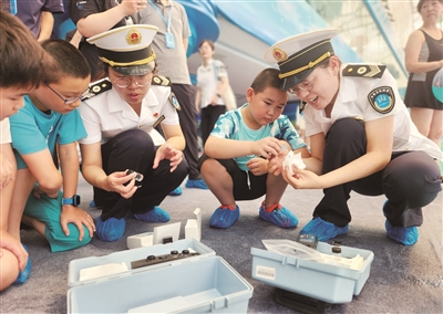 7月19日,北京市卫生健康监督所举办“关注泳池水质 体验卫监执法”卫生监督开放日活动,邀请10余名网友走进水立方嬉水园,现场跟随卫生监督员执法检查泳池水质,探访游泳场馆地下机房,普及游泳卫生知识。(相关新闻详见第4版)