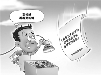 为进一步规范食用农产品市场销售行为,保障食用农产品质量安全,市场监管总局22日发布《食用农产品市场销售质量安全监督管理办法》,自2023年12月1日起施行。办法根据农产品质量安全法有关规定,将承诺达标合格证列为食用农产品进货查验的有效凭证之一,并鼓励优先采购带证的食用农产品;针对群众反映的“生鲜灯”误导消费者问题,办法增加对销售场所照明等设施的设置和使用要求。(7月22日 新华社)□王琪