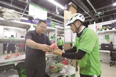 “穿工作服的户外劳动者们,可以免费领冰棍。”在北京CBD的“骑士驿站”,一名工作人员介绍说,站点内设置了冰棍领取点,同时,他们还可以在这里歇脚纳凉。这是北京CBD总工会联合饿了么推出的清凉服务。“骑士驿站”还为骑手群体发放了防暑药品和绿豆粥等清凉物资,受到了包括骑手在内的广大户外劳动者的欢迎。
