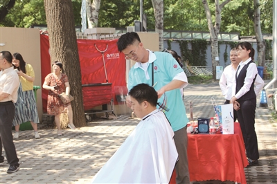 活动现场,东城区总工会党组副书记、副主席刘文维等领导一行为顺丰速运快递车张贴流动暖心驿站标识,发放流动暖心驿站暖心包,并为快递小哥送上矿泉水、洗护用品套装、冰袖等防暑降温慰问品。对现场有入会意愿的快递小哥,由该街道总工会邀请北京银行工作人员现场办理工会会员互助服务卡。同时,龙潭街道工会志愿服务队为快递小哥免费测量血压和理发。