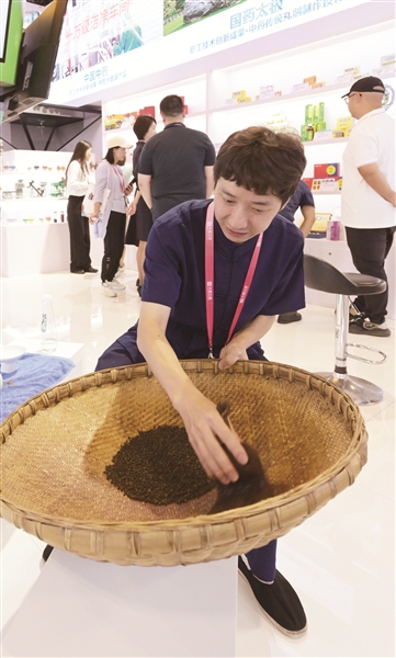 在大国工匠论坛的展览展示区,国药太极集团重庆桐君阁药厂丸剂生产区工段长、“大国工匠”蔡苏一边进行手工泛丸的展示,一边向观众普及中医药知识。“之所以在这里展示,是想让观众了解传统中药药丸的制作过程,传承中医药文化。”蔡苏说。