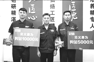 8月3日,江苏徐州重型机械有限公司向两位90后职工张言柯、杨旭分别颁发了见义勇为奖金10000元和5000元,表彰他们勇救落水儿童的感人义举。(8月7日《江苏工人报》)