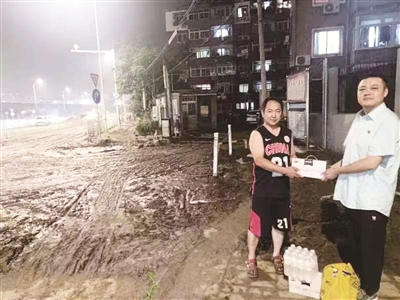 本报讯 (记者 陈曦 通讯员 杨晓凤 张晓) “感谢领导的惦念和关心,我们一定克服困难,回到岗位继续努力工作。”近日,西城区邮政分公司西外大街邮政支局工会主席一路踩着泥水来到受强降雨影响的家住门头沟某小区的职工李铁家中,送来了牛奶、面包、卤蛋、香肠、火腿肠等生活必需品。