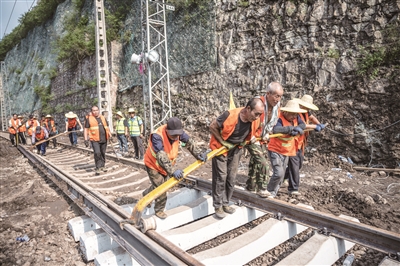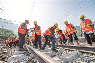 中国铁路北京局北京西工务段副段长申文军向记者介绍,珠窝站是此次抢修的难点,是决定通车的关键地段之一。该站一侧邻永定河,一侧倚山体,属于“半堤半堑”地形,防洪难度大。最初由于公路损毁,无法通行,石砟、钢轨等路料和抢险机具的运输分别从北京和沙城方向相向推进,最终在珠窝站汇合、打通全线。丰沙铁路恢复通车,将为后续救援物资的运输提供有力保障。