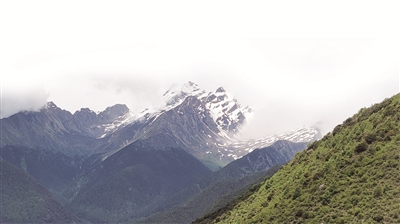 返回城区的路上,客车再次经过途中的一处观景台,这里也可以观赏南迦巴瓦峰的全貌。我请求司机再次停车,让我们最后一次碰碰运气。这次好运气果然来了。南迦巴瓦峰上虽有云朵在飘荡,但真容却完整地显露出来。但见巨大的三角形峰体突兀耸立,“状若长矛,直刺苍穹”,顶部白雪皑皑,如同披上白纱的少女端坐在高空云间。雅鲁藏布大峡谷之行终于没有留下遗憾,真是圆满!