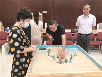 心理治疗师介绍说,沙盘游戏是一种非语言的心理治疗方式,参与者在摆放沙具时,也是在无声地表达自己的内心世界,在这个过程中,还可以学会从别人的角度看问题,通过感悟他人的心理,激发对自我的反省与提升,促使自身内心成长,提高团队凝聚力。