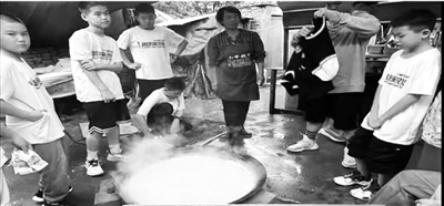 当时,驻地受暴雨、洪水影响,停水停电,施工便道被洪水冲毁,食品无法及时供给。而驻地工作人员手里仅有挂面和大米,只能煮挂面、熬米粥。没有电,就在院里支起一口小锅,把院里能找到的木料劈成柴烧火煮饭吃。小锅一次只能做出6个人的饭,就这样,从早到晚不停地烧,所有大人都很默契地让孩子们先吃,孩子们也都很乖巧懂事,面对简陋的条件,没有一句抱怨,还会帮忙做一些力所能及的事情。