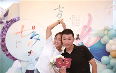 昨天是中国传统节日七夕,西城区婚姻登记处一大早就有不少新人排队等候结婚登记,工作人员为每对新人准备了手花等伴手礼,并提前对颁证大厅重新布置一番,现场满满的浪漫气息。