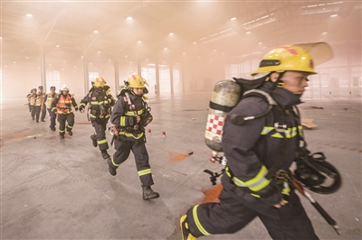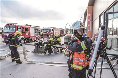 近日的一个下午,石景山区消防救援支队在首钢园区举行灭火救援综合实战演练。据了解,此次演练是一次大跨度、大空间建筑灾害事故的跨区域综合实战演练,是对消防救援队伍应对服贸会期间发生突发事件的一次检验。