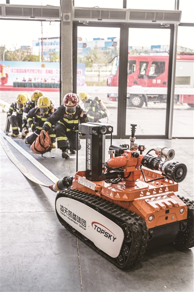 据石景山区消防救援支队副队长邵磊介绍,“本次演练的特色在于利用无人机及消防机器人等新型科技装备,消防员们可以借此快速获知起火点位,从而更高效地实施救援。今年也首次使用了安全管控系统,可以同步监控消防员的身体情况,包括脉搏、心肺功能等,还可以确定每个消防员的点位,保障消防员的人身安全。”