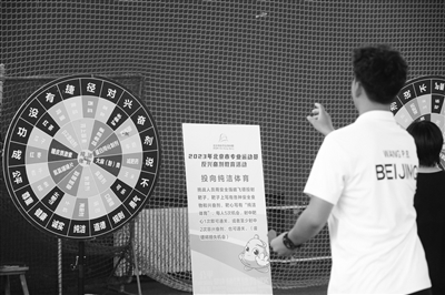 北京市反兴奋剂中心于6月至8月组织开展北京市专业运动员反兴奋剂教育活动,通过讲座培训、座谈交流、警示教育、拓展活动、知识竞赛等多种形式,面向市级专业运动队进行了全覆盖、多轮次的反兴奋剂教育,弘扬中华体育精神,树立“拿干净金牌”理念。图为在近日举行的北京市专业运动员反兴奋剂教育活动中,一位青年运动员参与“公平一掷”互动游戏。本报记者 彭程 摄影报道